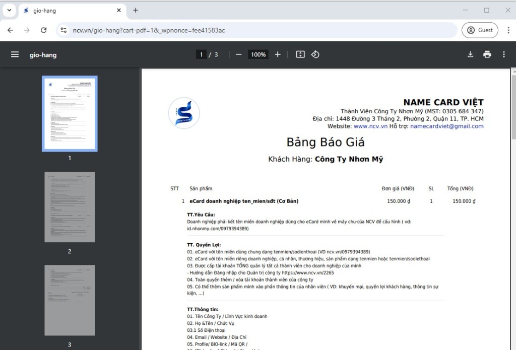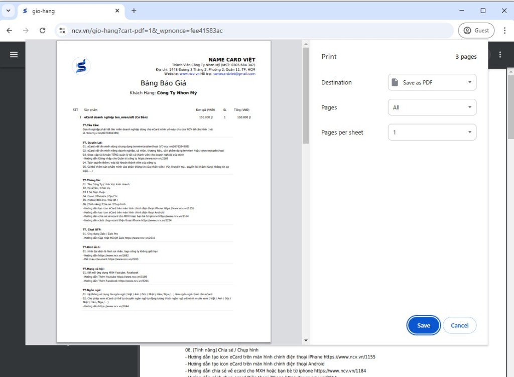 Xuất báo giá sản phẩm (File PDF) / In báo giá trực tiếp trên web