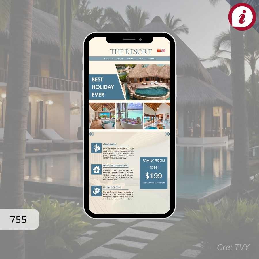 1. Giao diện tương thích mọi màn hình máy tính bảng (từ 9 inch – 12 inch ) 2. Giao diện tương thích mọi màn hình máy tính PC / Laptop (từ 7 inch – 34 inch ) 3. Giao diện tương thích mọi màn hình điện thoại (từ 3.5 inch – 6.5 inch ) 4. Tự động co giãn giao diện, dịch chuyển icon, chuyên mục phù hợp mọi thiết bị xem trang web 5. Nâng cao trải nghiệm người dùng với giao diện gần giống Ứng dụng / App trên di động Cho phép Admin / quản trị điều chỉnh logo / banner / nội dung cho từng thiết bị truy cập web Xem https://www.nhonmy.com/418