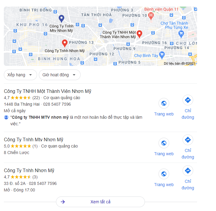 Chúng tôi đã thực hiện thành công rất nhiều Maps cho các doanh nghiệp. Và hiển nhiên để đủ năng lực thực hiện dịch vụ SEO maps cho các doanh nghiệp đối tác thì trước tiên, chúng tôi phải đủ năng lực thực hiện Seo Google Maps cho chính doanh nghiệp mình.